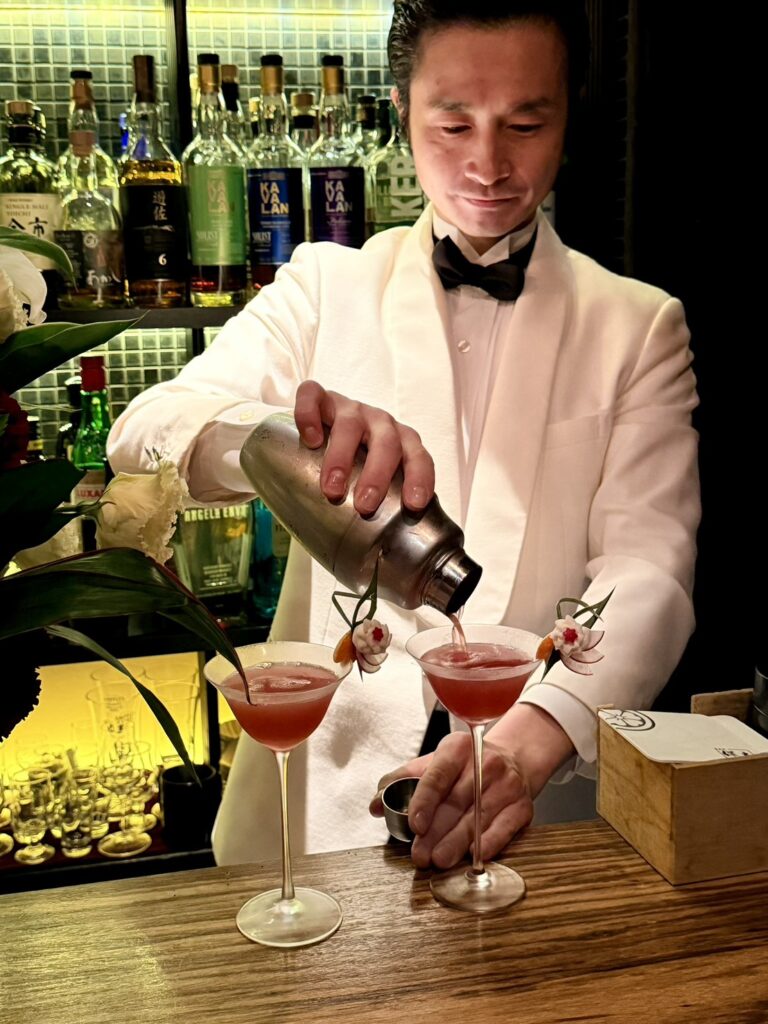 今回使用した桃のリキュールとも相性が良く、同じバラ科ならではの自然な調和が生まれました。果実の繊細な甘みや香りが生きる一杯になったと思います。」